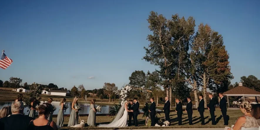 Surrounded by rolling pastures and a tranquil pond, our 23-acre property features a rustic and elegant event barn, several distinct ceremony sites—including a waterfront overlook and a charming chapel—and a thoughtfully curated guest home for family and wedding parties.